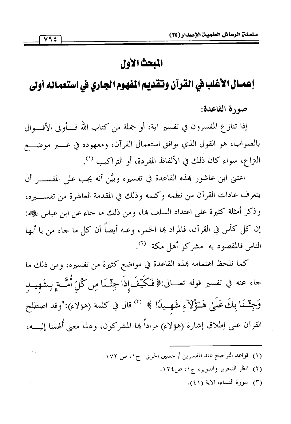 (¬1) قواعد الترجيح عند المفسرين / حسين الحربي ج 1، ص 172.