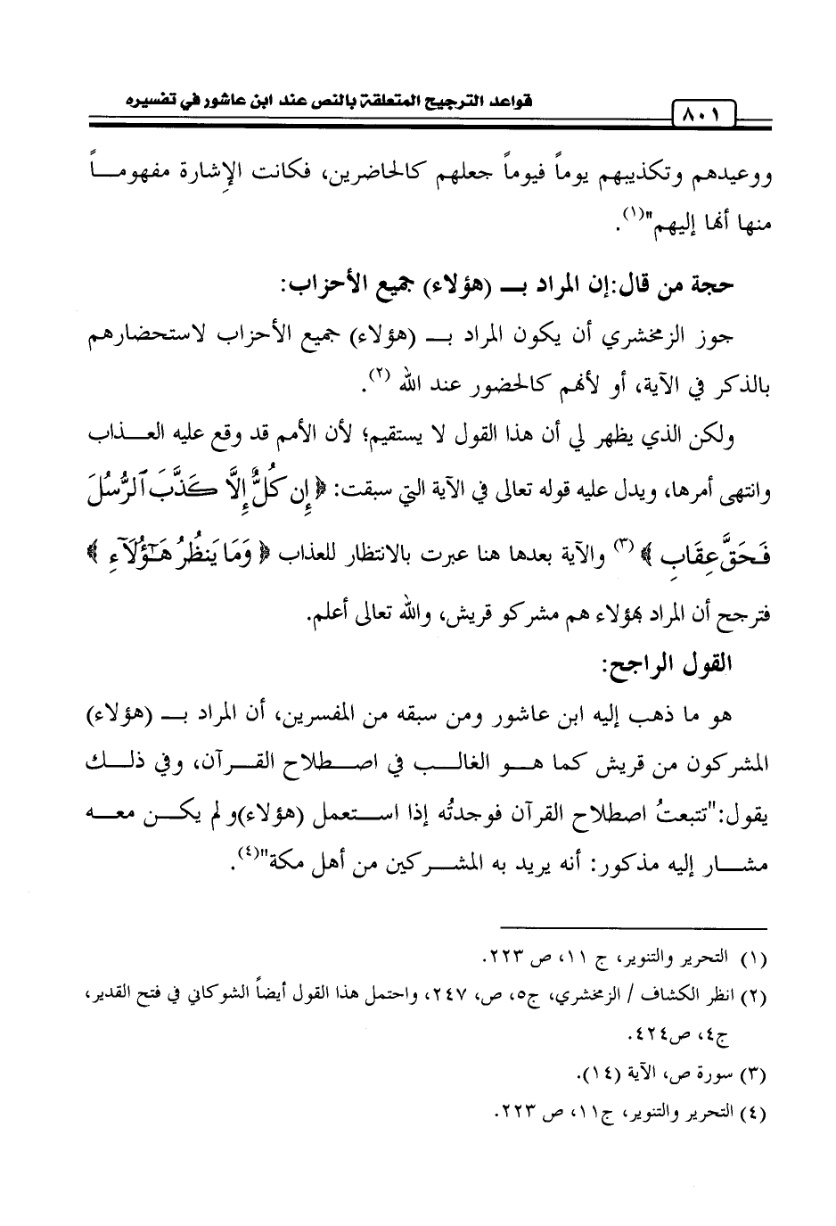 كتاب قواعد الترجيح المتعلقة بالنص عند ابن عاشور في تفسيره التحرير والتنوير