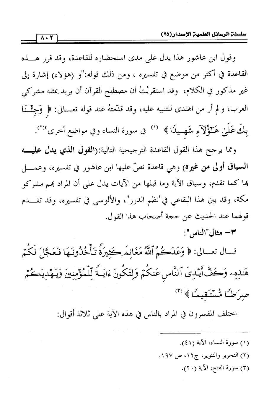 كتاب قواعد الترجيح المتعلقة بالنص عند ابن عاشور في تفسيره التحرير والتنوير