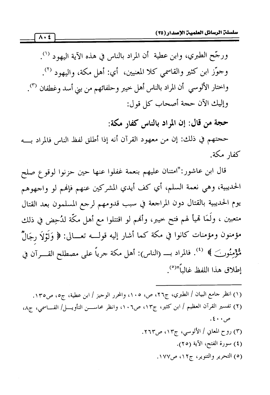 (¬1) انظر جامع البيان / الطبري، ج 26، ص، 105، والمحرر الوجيز / ابن عطية، ج 5، ص 135.
