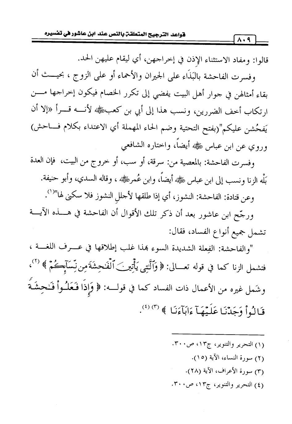 كتاب قواعد الترجيح المتعلقة بالنص عند ابن عاشور في تفسيره التحرير والتنوير