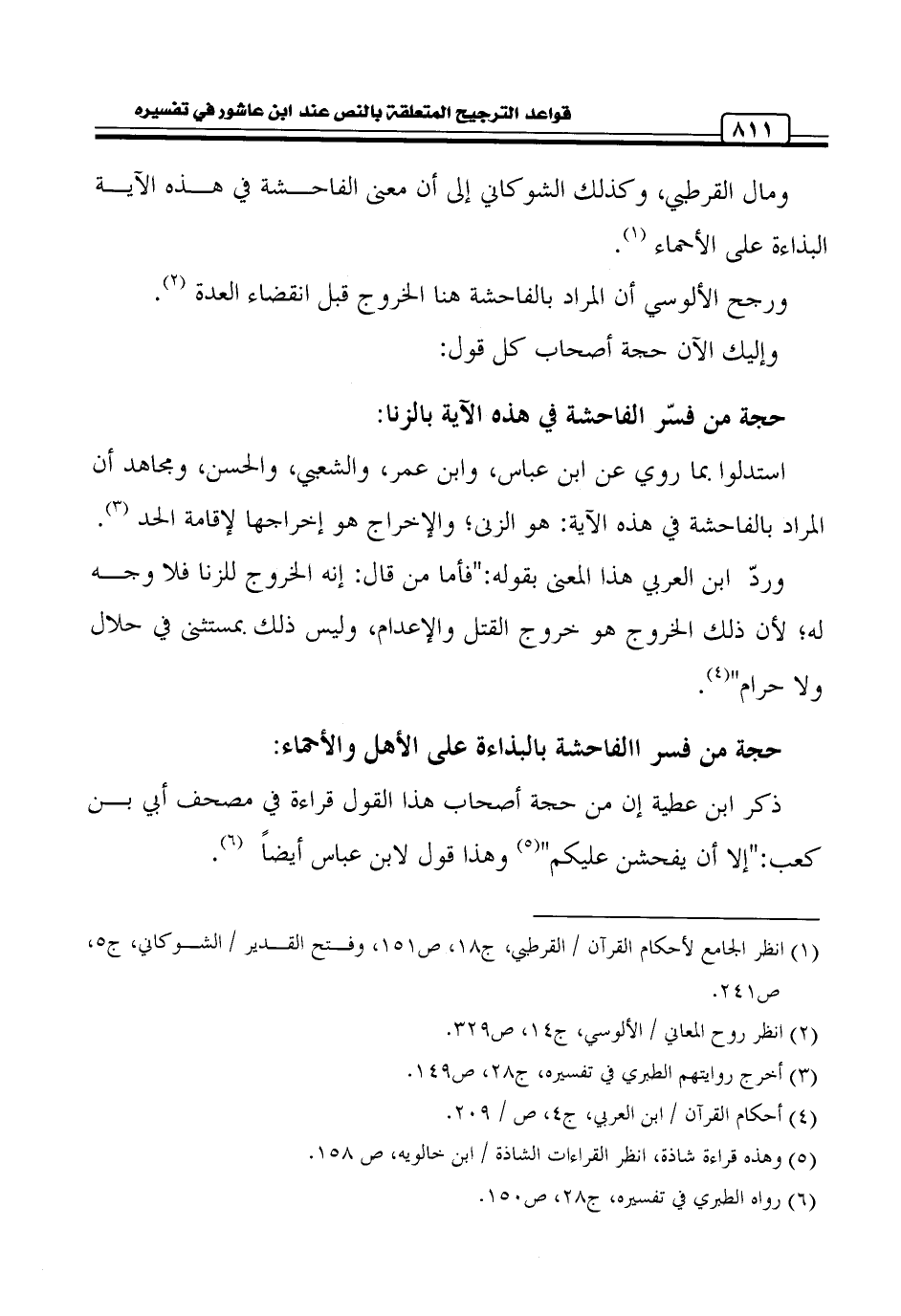 كتاب قواعد الترجيح المتعلقة بالنص عند ابن عاشور في تفسيره التحرير والتنوير