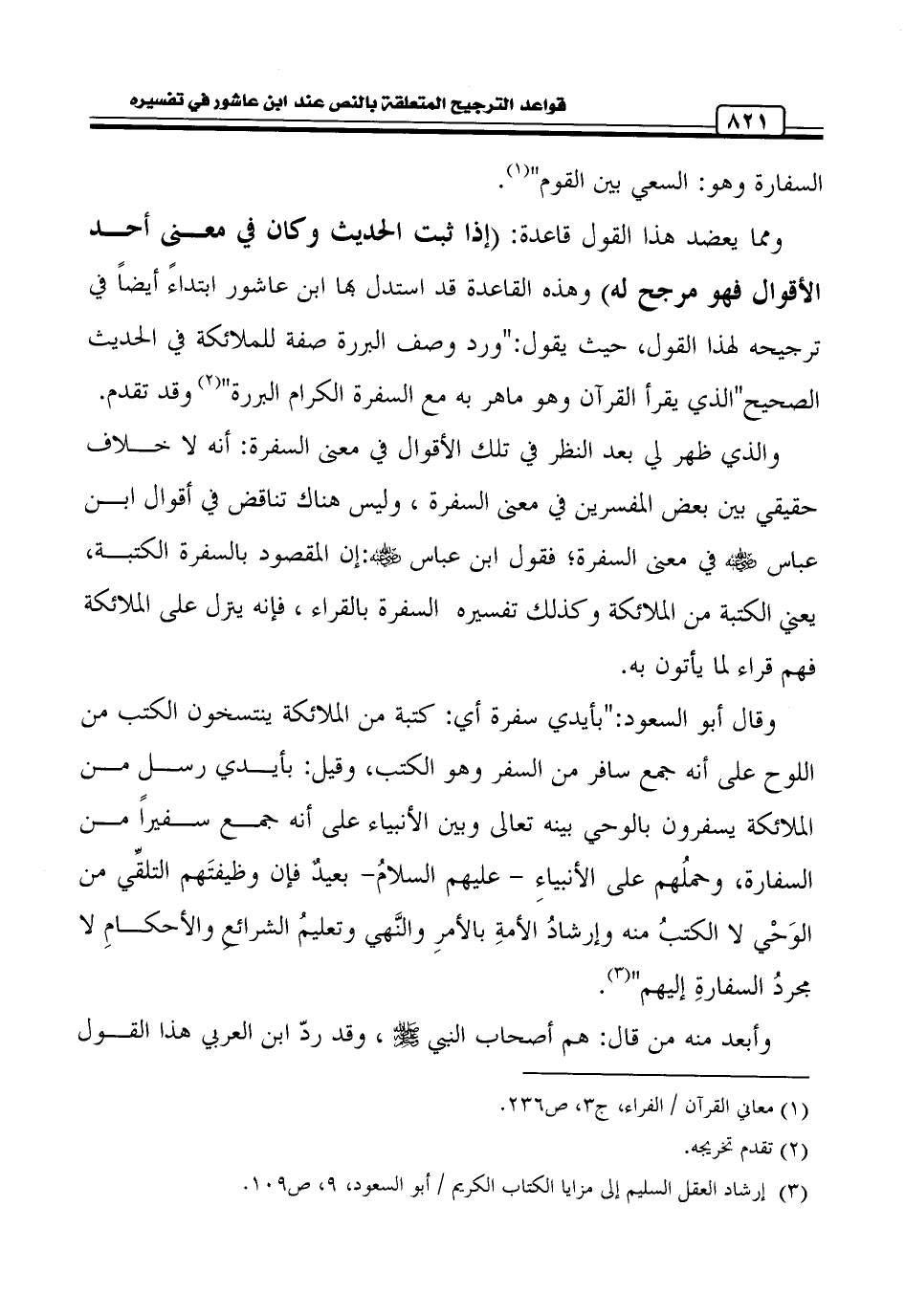 كتاب قواعد الترجيح المتعلقة بالنص عند ابن عاشور في تفسيره التحرير والتنوير
