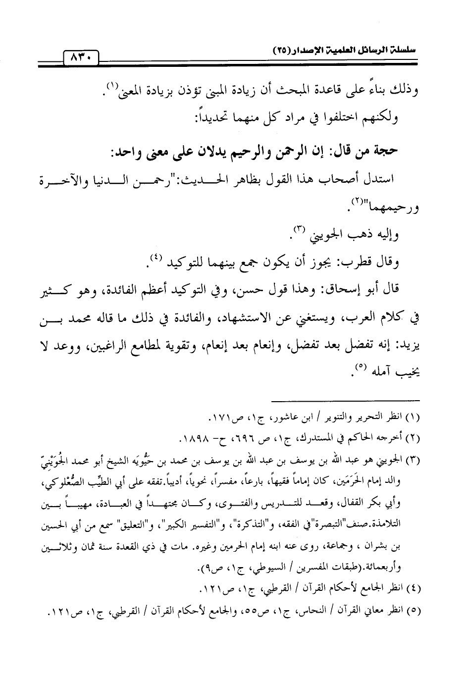 (¬1) انظر التحرير والتنوير / ابن عاشور، ج 1، ص 171.