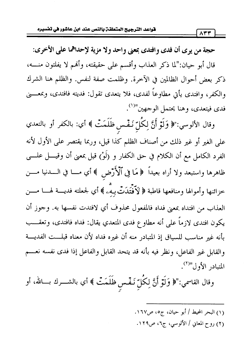 كتاب قواعد الترجيح المتعلقة بالنص عند ابن عاشور في تفسيره التحرير والتنوير
