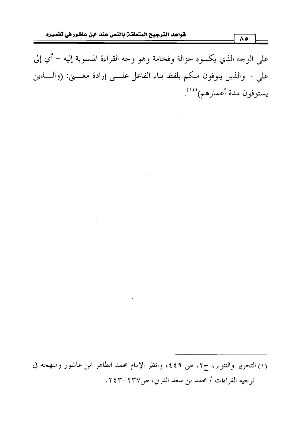 كتاب قواعد الترجيح المتعلقة بالنص عند ابن عاشور في تفسيره التحرير والتنوير