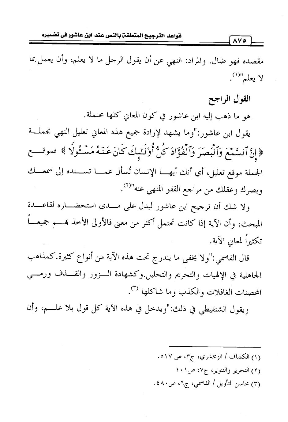 كتاب قواعد الترجيح المتعلقة بالنص عند ابن عاشور في تفسيره التحرير والتنوير