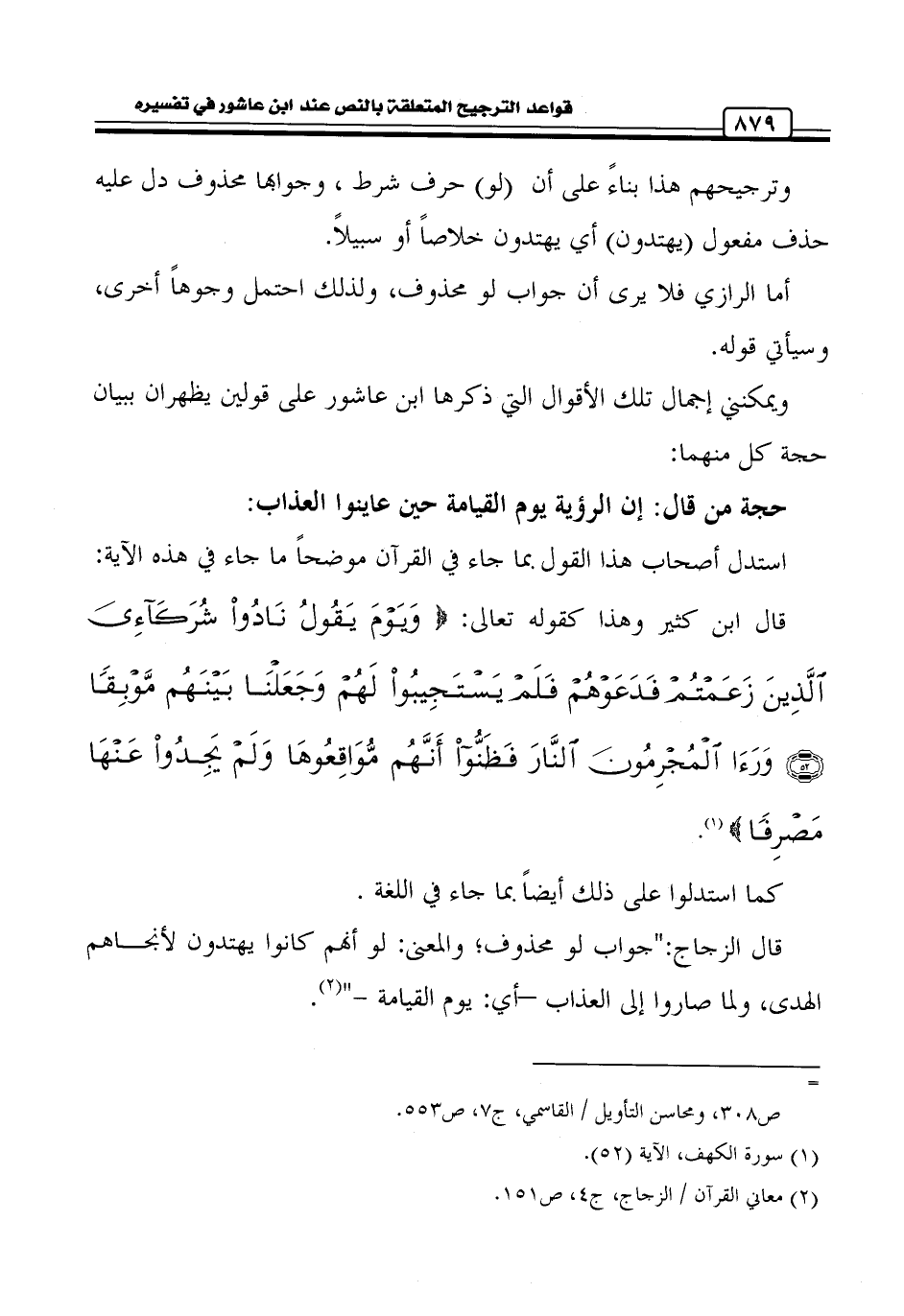 كتاب قواعد الترجيح المتعلقة بالنص عند ابن عاشور في تفسيره التحرير والتنوير