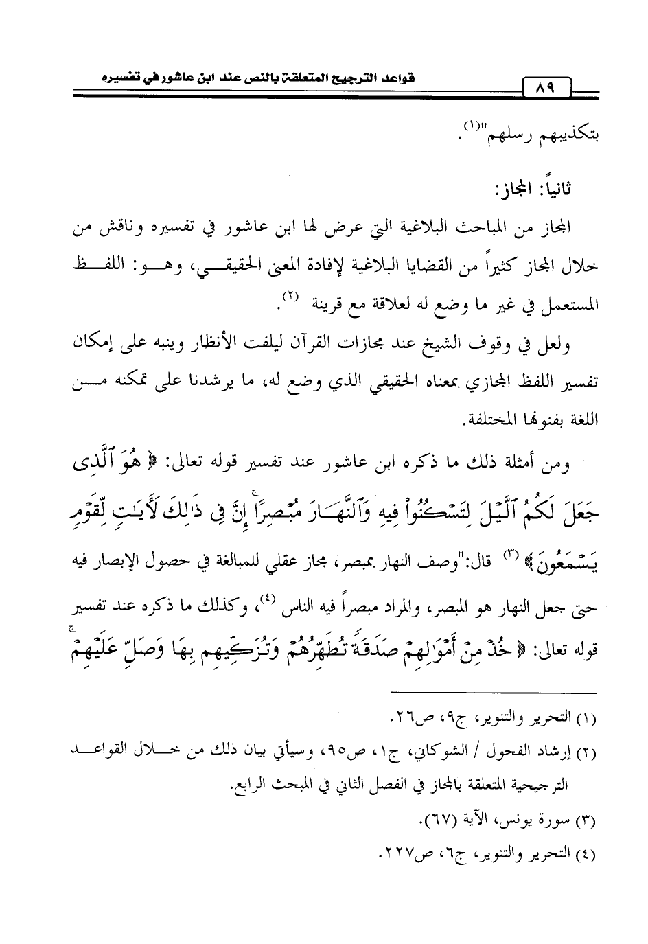 كتاب قواعد الترجيح المتعلقة بالنص عند ابن عاشور في تفسيره التحرير والتنوير