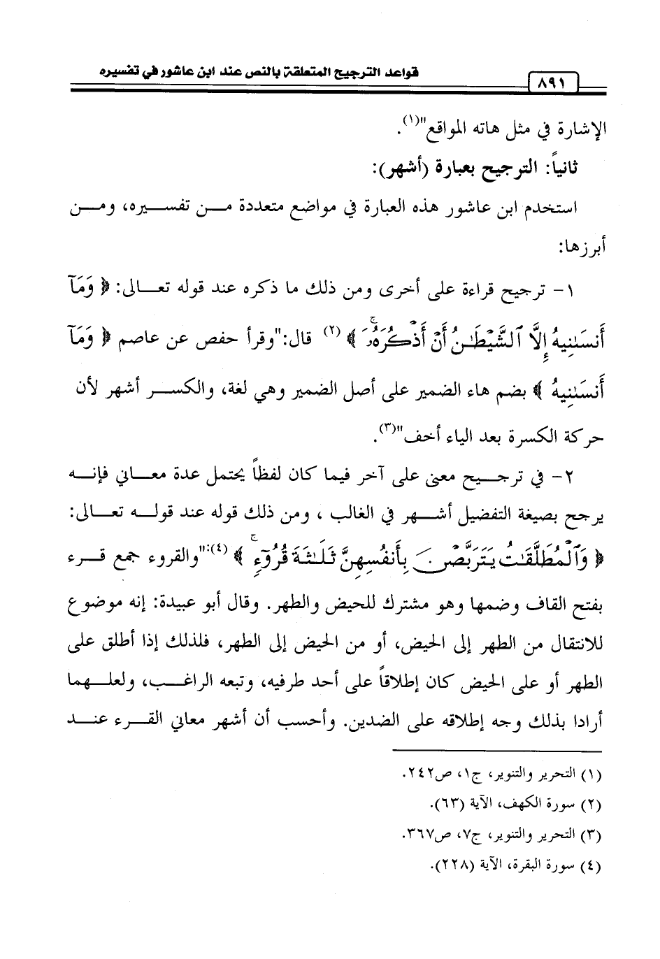 كتاب قواعد الترجيح المتعلقة بالنص عند ابن عاشور في تفسيره التحرير والتنوير