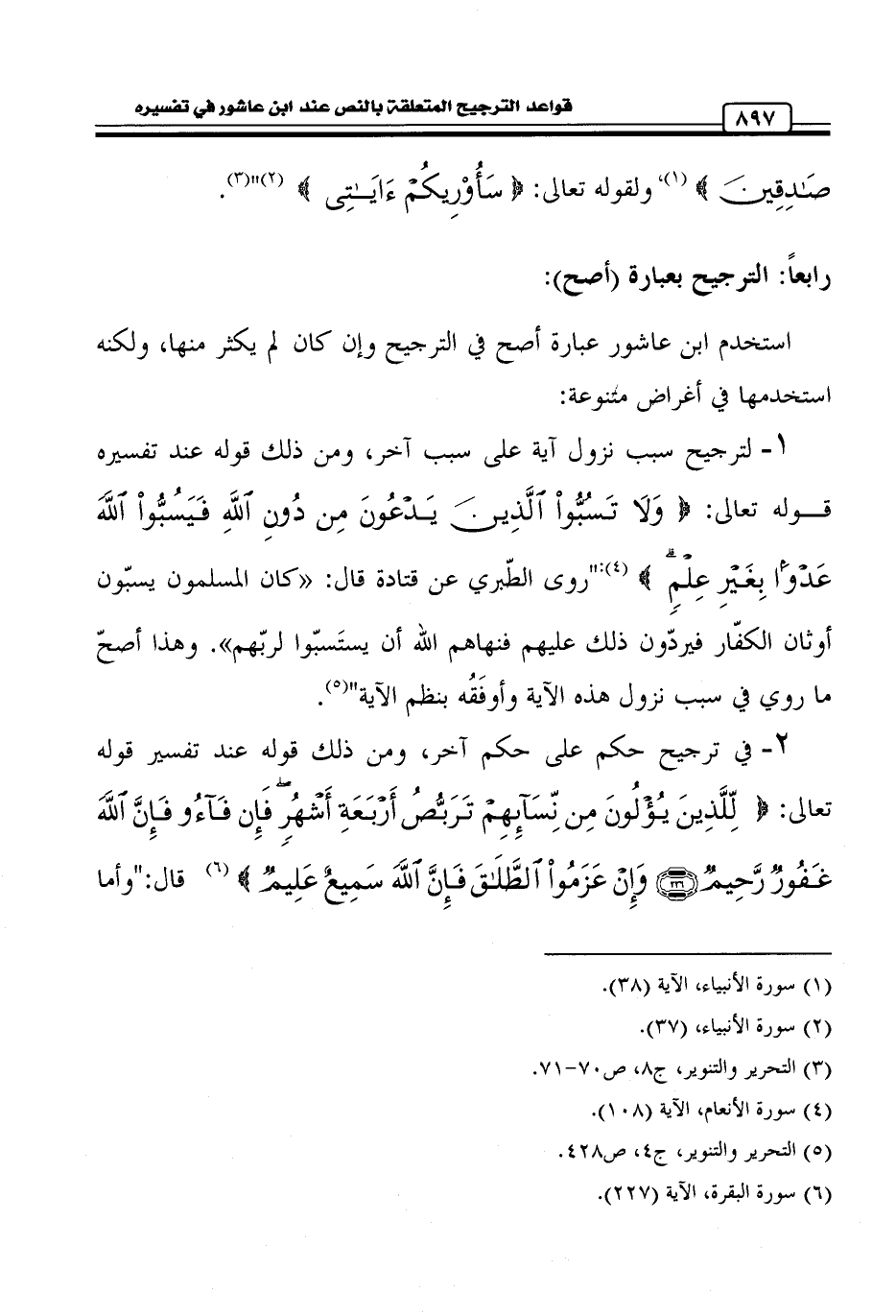 كتاب قواعد الترجيح المتعلقة بالنص عند ابن عاشور في تفسيره التحرير والتنوير
