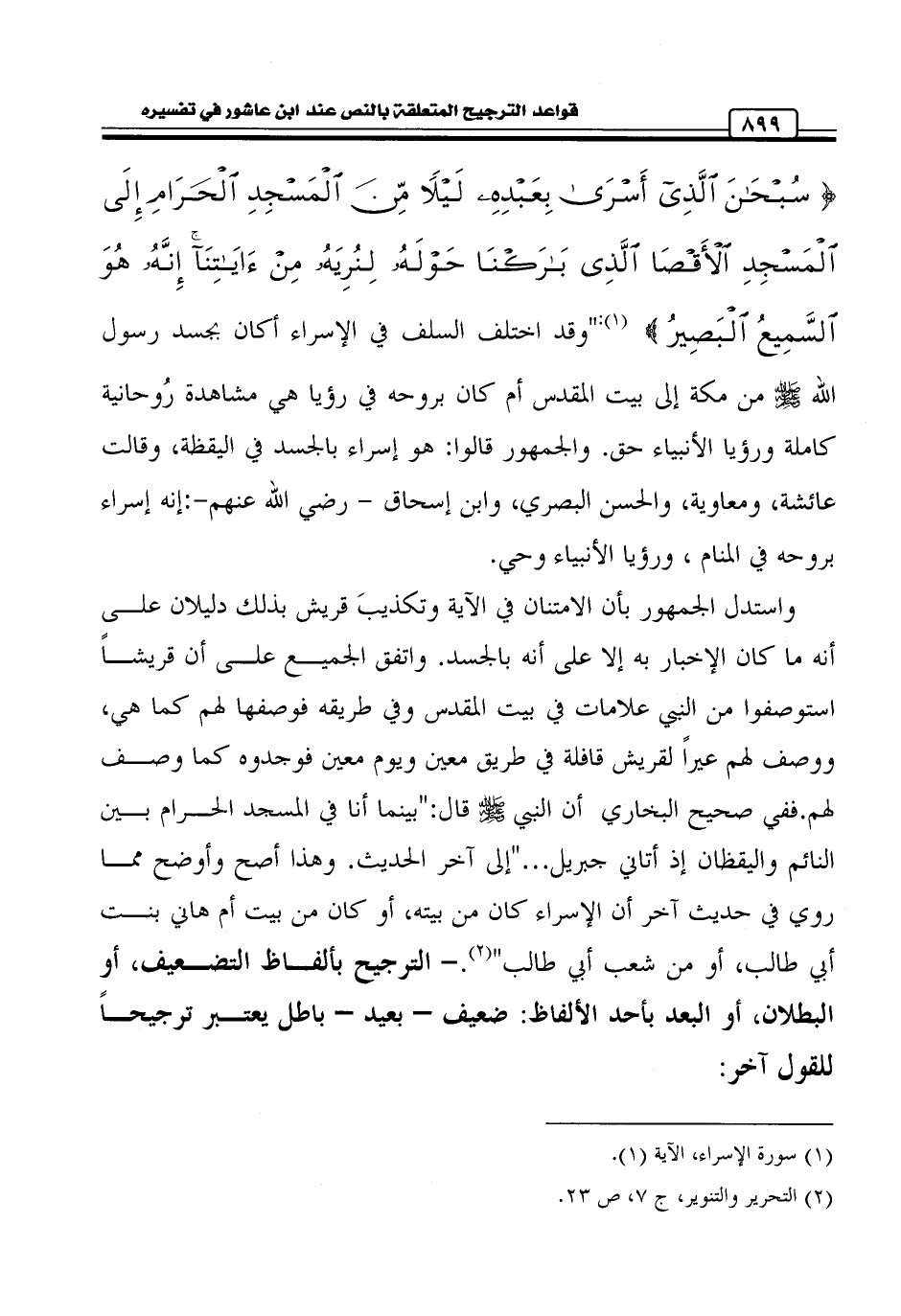 كتاب قواعد الترجيح المتعلقة بالنص عند ابن عاشور في تفسيره التحرير والتنوير
