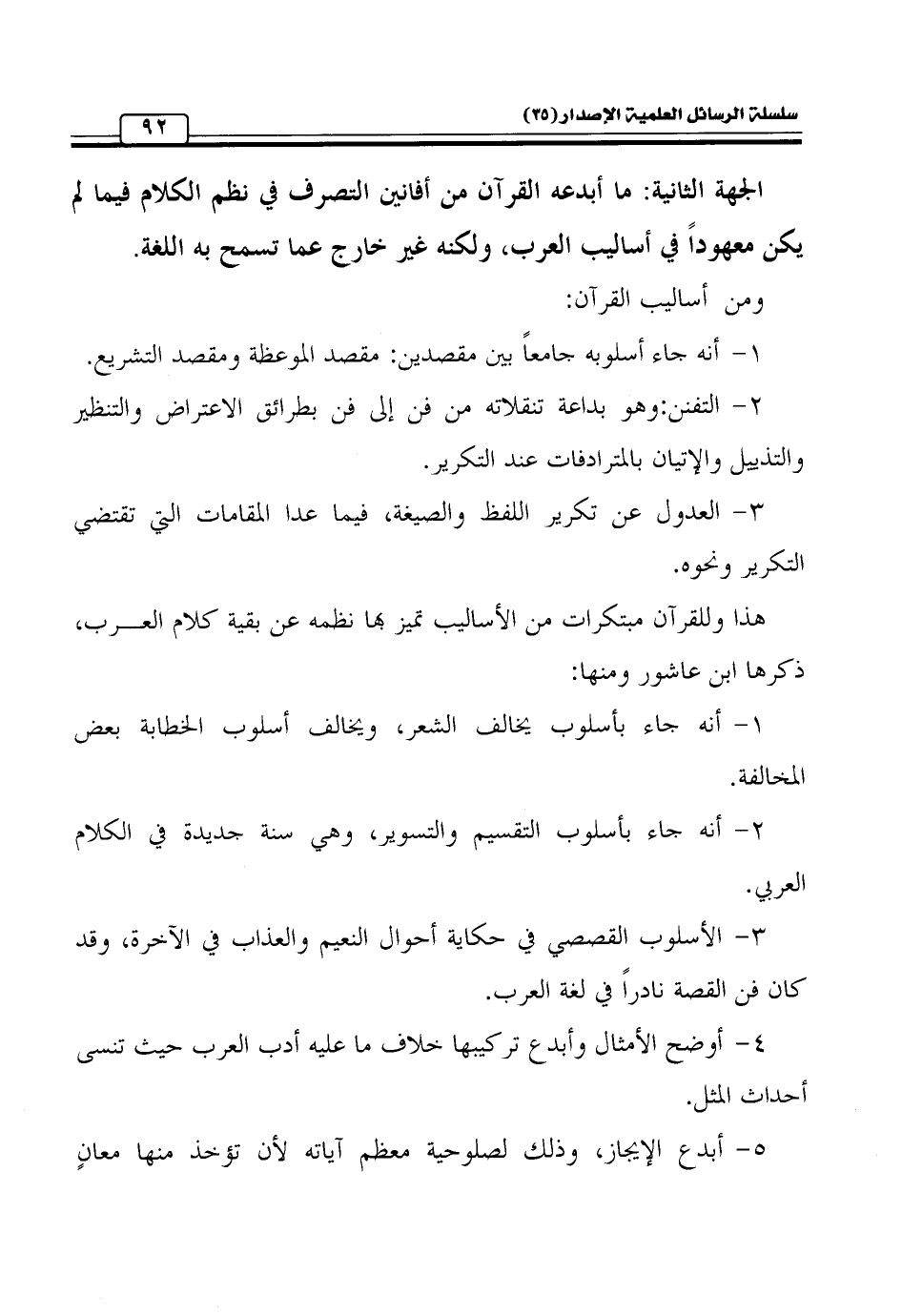 الجهة الثانية: ما أبدعه القرآن من أفانين التصرف في نظم الكلام فيما لم يكن معهوداً في أساليب العرب، ولكنه غير خارج عما تسمح به اللغة.