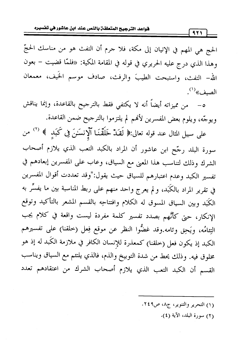 كتاب قواعد الترجيح المتعلقة بالنص عند ابن عاشور في تفسيره التحرير والتنوير