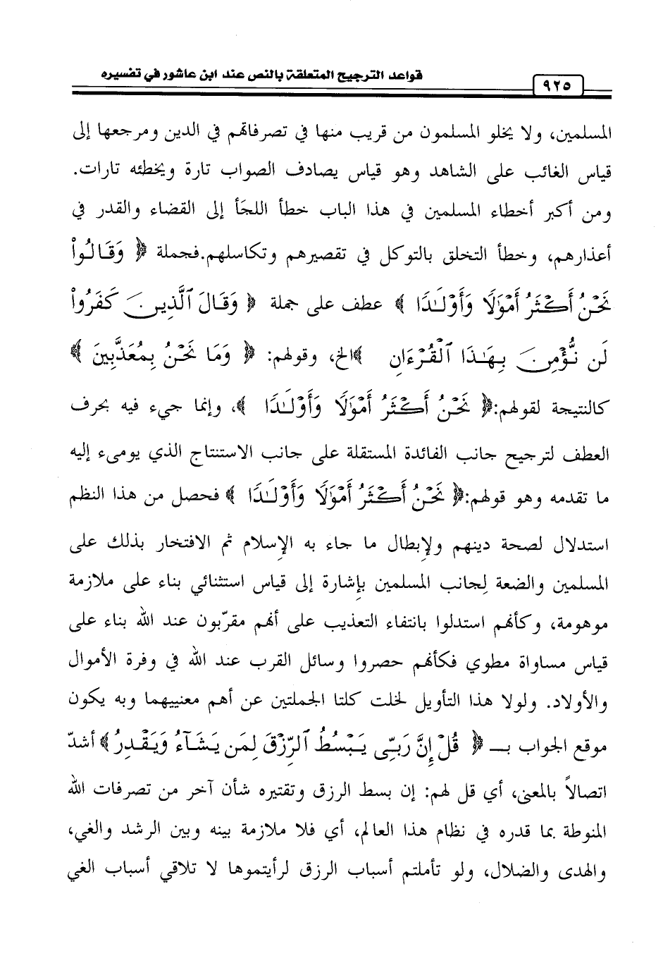 كتاب قواعد الترجيح المتعلقة بالنص عند ابن عاشور في تفسيره التحرير والتنوير