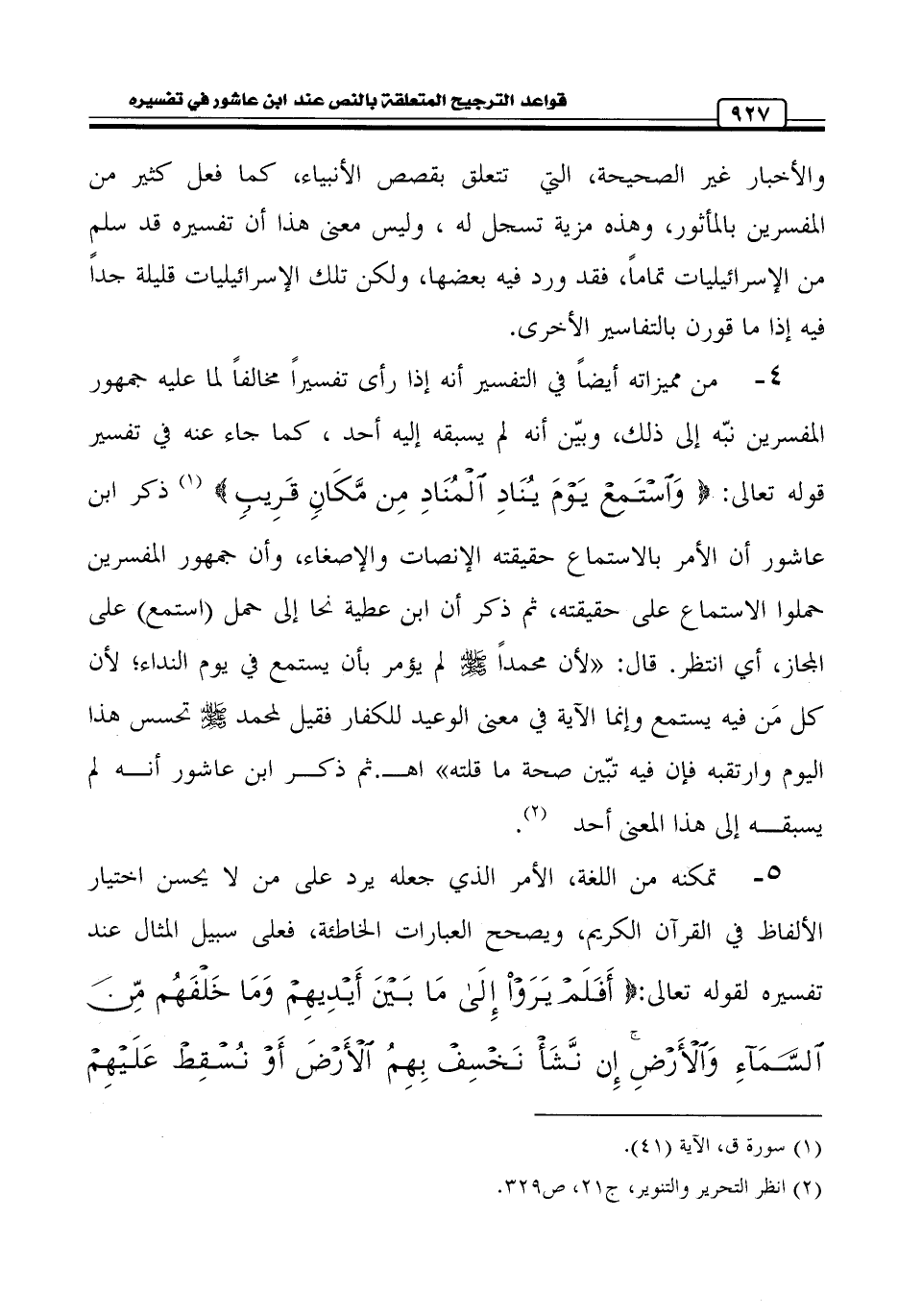 كتاب قواعد الترجيح المتعلقة بالنص عند ابن عاشور في تفسيره التحرير والتنوير