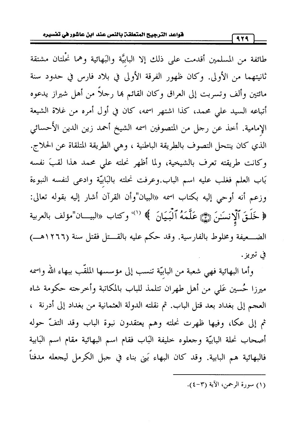 كتاب قواعد الترجيح المتعلقة بالنص عند ابن عاشور في تفسيره التحرير والتنوير