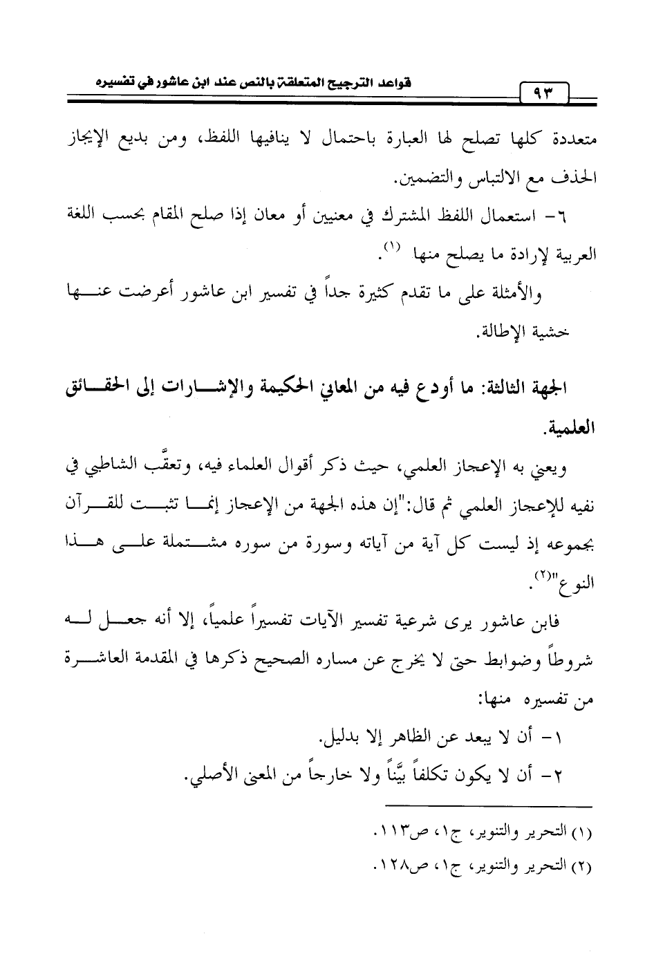 كتاب قواعد الترجيح المتعلقة بالنص عند ابن عاشور في تفسيره التحرير والتنوير