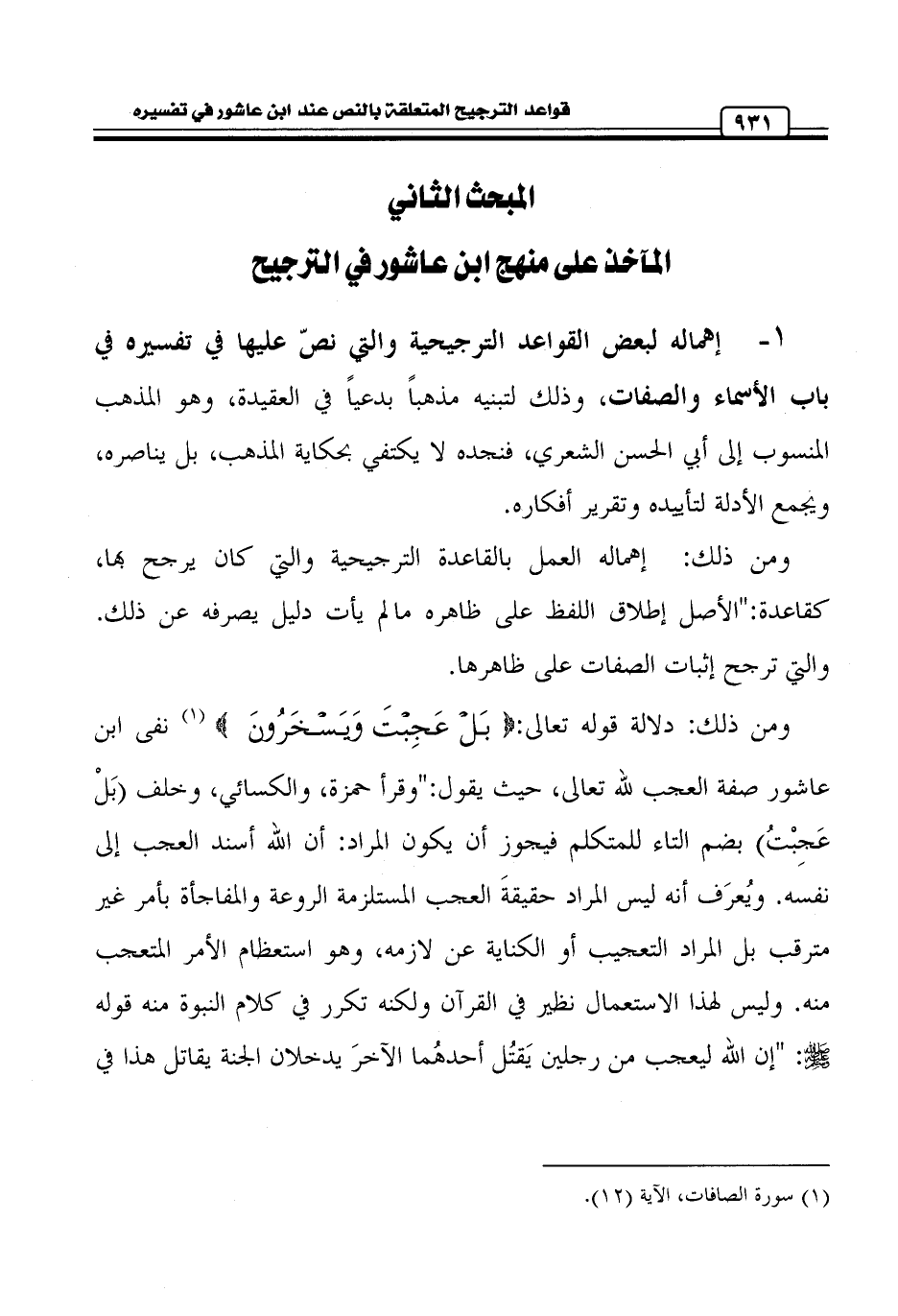 كتاب قواعد الترجيح المتعلقة بالنص عند ابن عاشور في تفسيره التحرير والتنوير