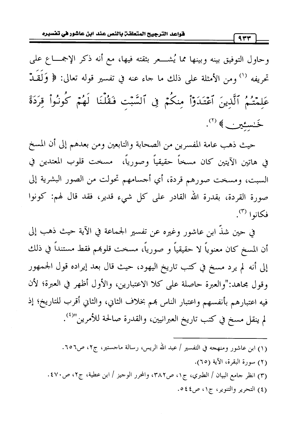 كتاب قواعد الترجيح المتعلقة بالنص عند ابن عاشور في تفسيره التحرير والتنوير