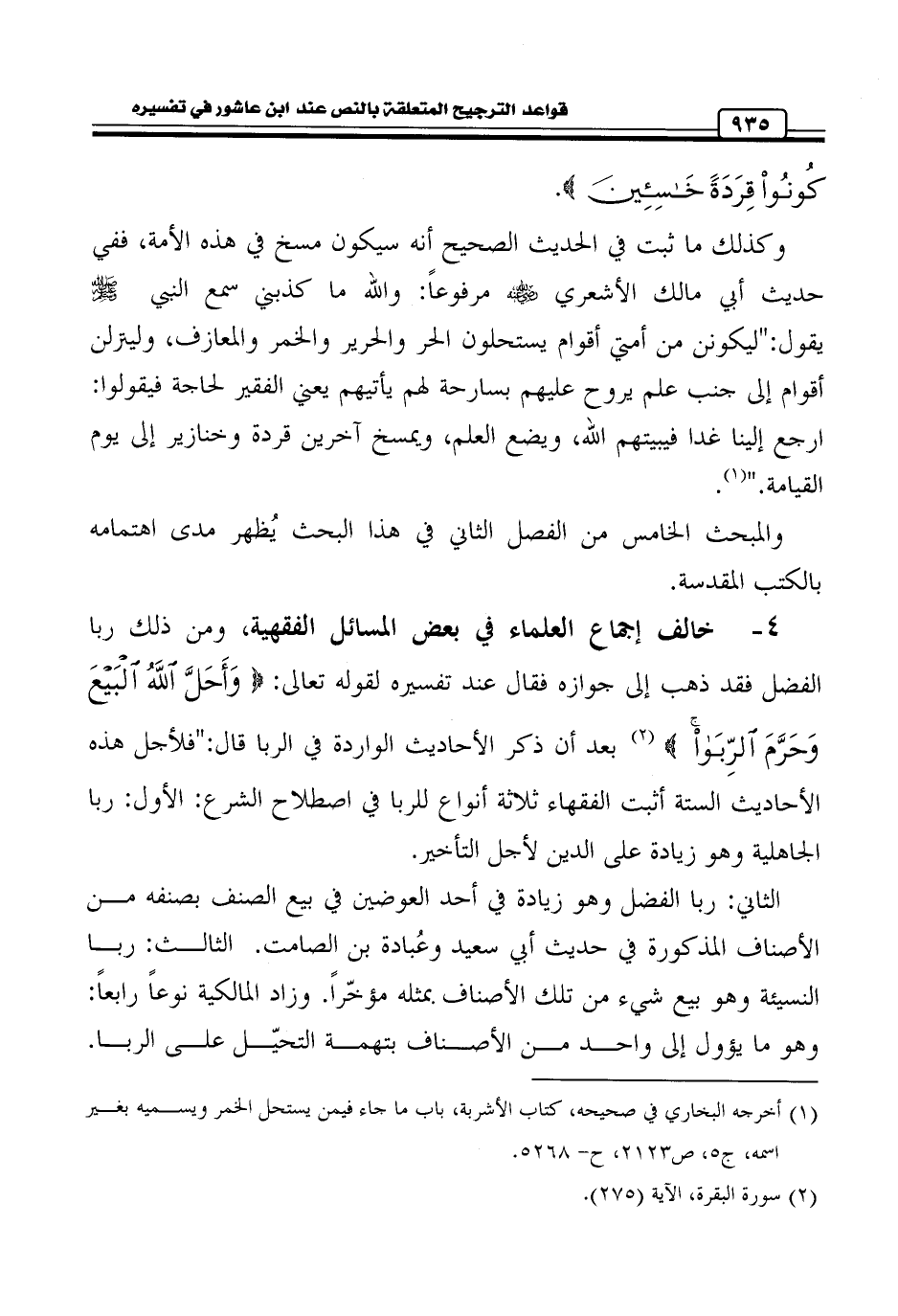كتاب قواعد الترجيح المتعلقة بالنص عند ابن عاشور في تفسيره التحرير والتنوير