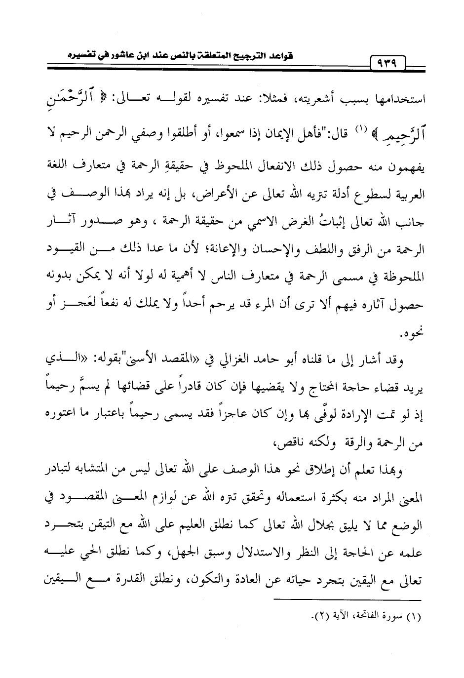 كتاب قواعد الترجيح المتعلقة بالنص عند ابن عاشور في تفسيره التحرير والتنوير