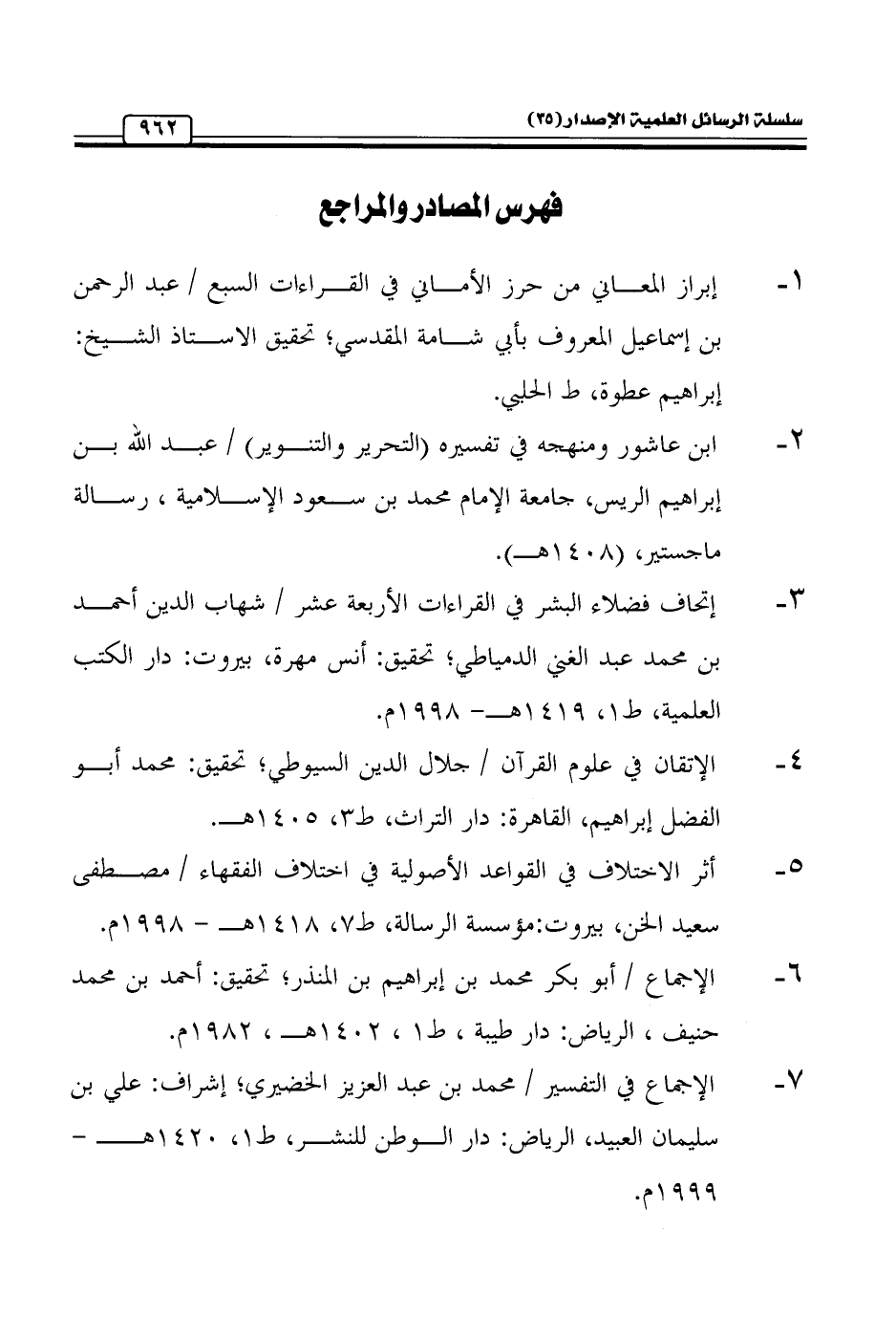 3 - إتحاف فضلاء البشر في القراءات الأربعة عشر / شهاب الدين أحمد بن محمد عبد الغني الدمياطي؛ تحقيق: أنس مهرة، بيروت: دار الكتب العلمية، ط 1، 1419 هـ- 1998 م.