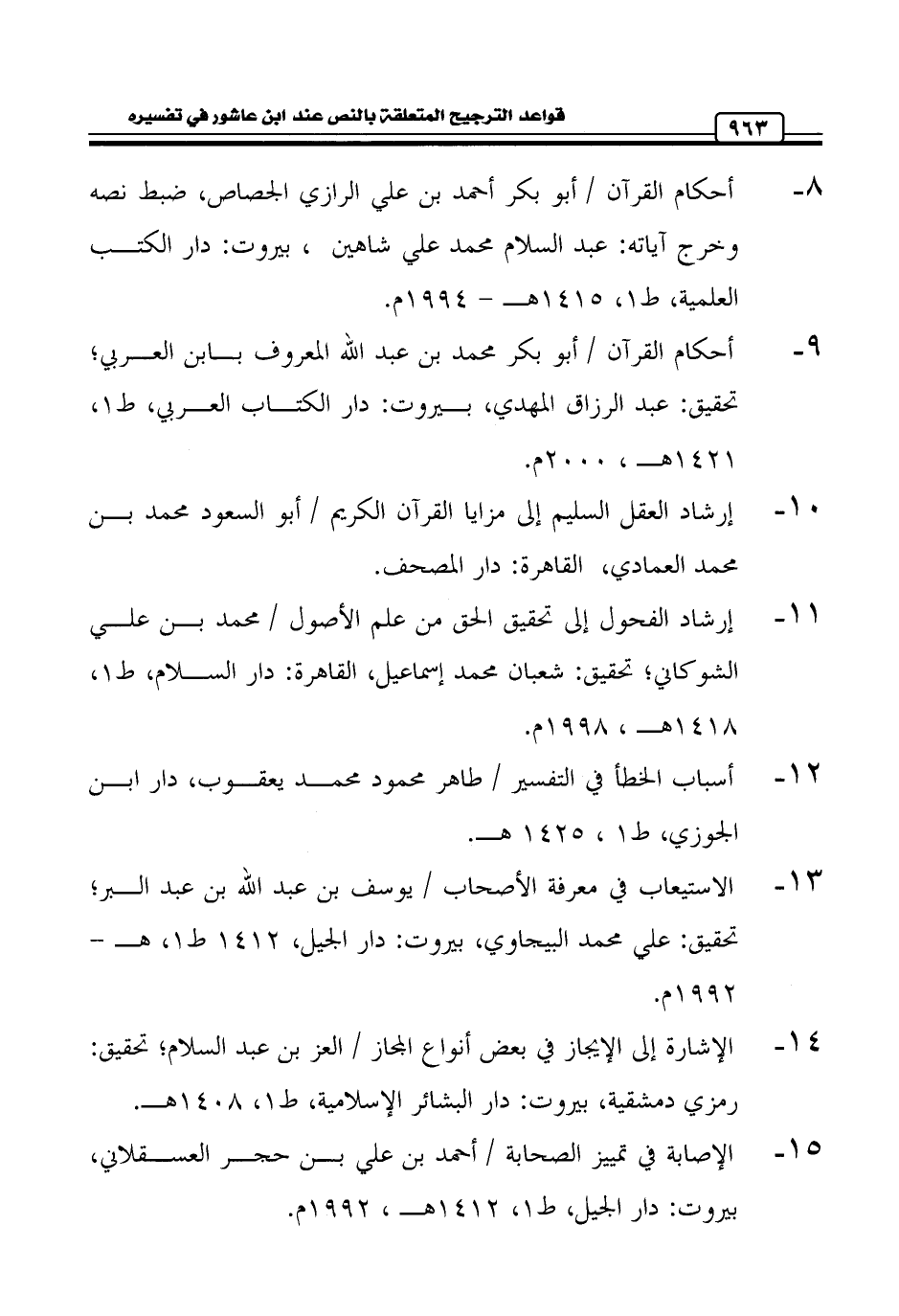 كتاب قواعد الترجيح المتعلقة بالنص عند ابن عاشور في تفسيره التحرير والتنوير