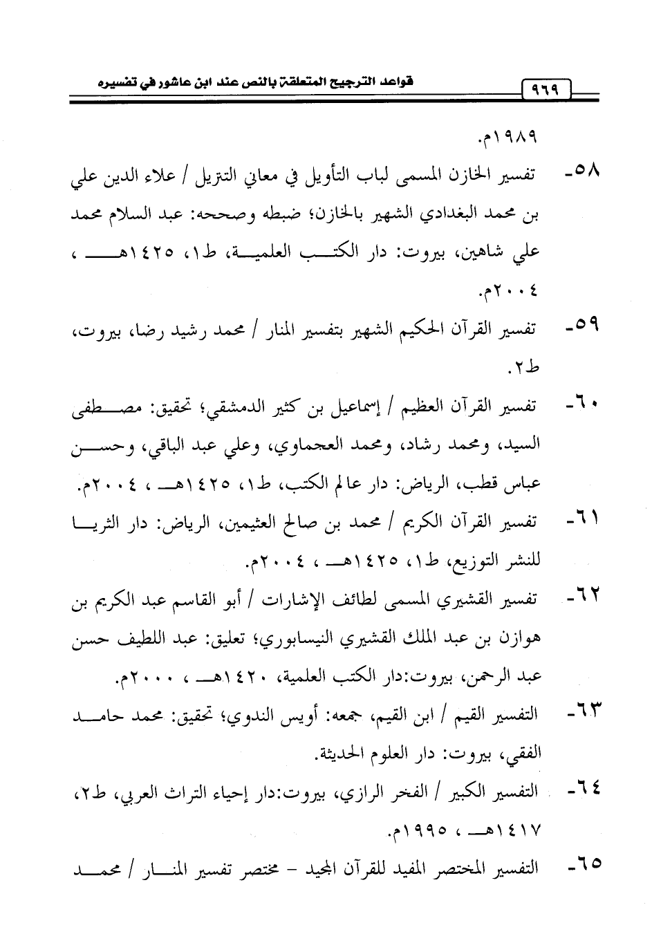 كتاب قواعد الترجيح المتعلقة بالنص عند ابن عاشور في تفسيره التحرير والتنوير