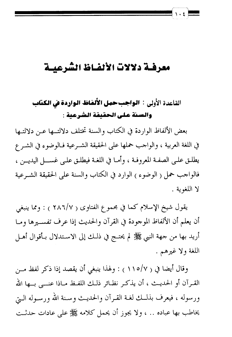 القاعدة الأولى: الواجب حمل الألفاظ الواردة في الكتاب والسنة على الحقيقة الشرعية: