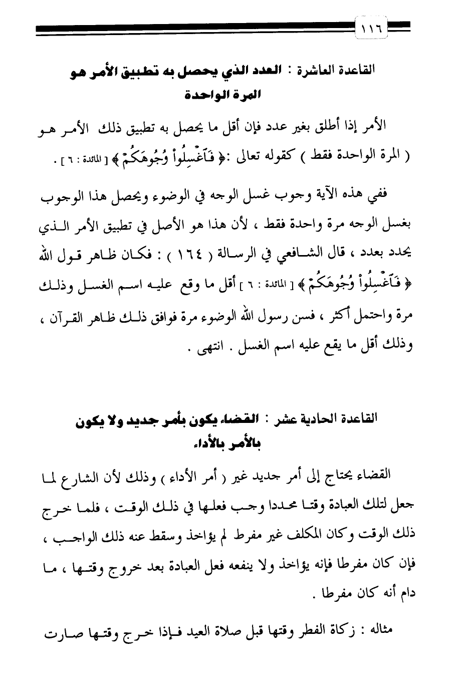 القاعدة العاشرة: العدد الذي يحصل به تطبيق الأمر هو المرة الواحدة