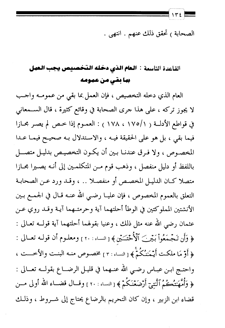 القاعدة التاسعة: العام الذي دخله التخصيص يجب العمل بما بقي من عمومه