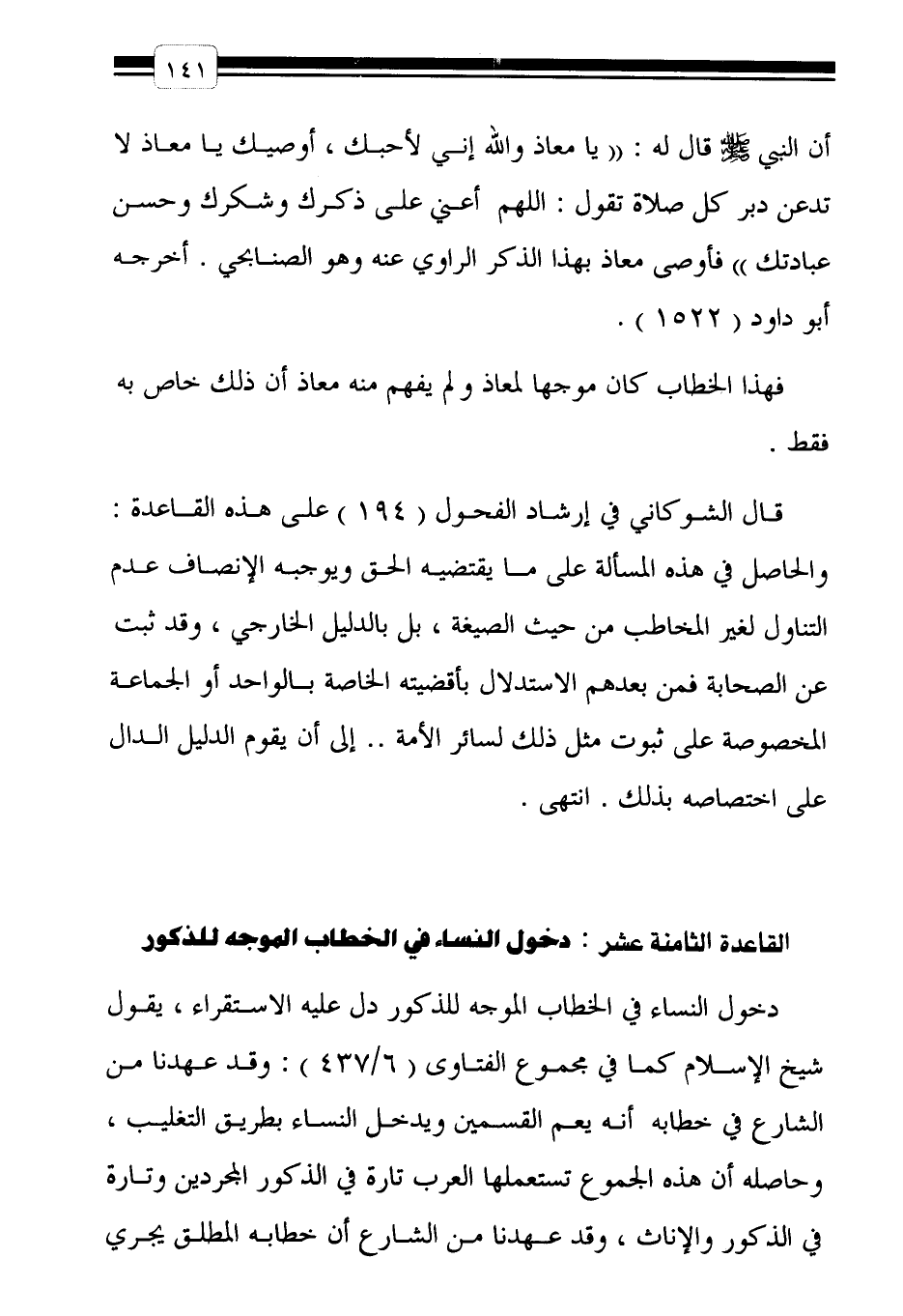 القاعدة الثامنة عشر: دخول النساء في الخطاب الموجه للذكور
