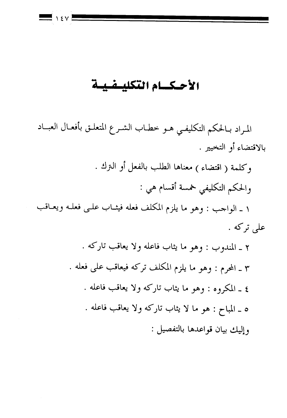 1 - الواجب: وهو ما يلزم المكلف فعله فيثاب على فعله ويعاقب على تركه.