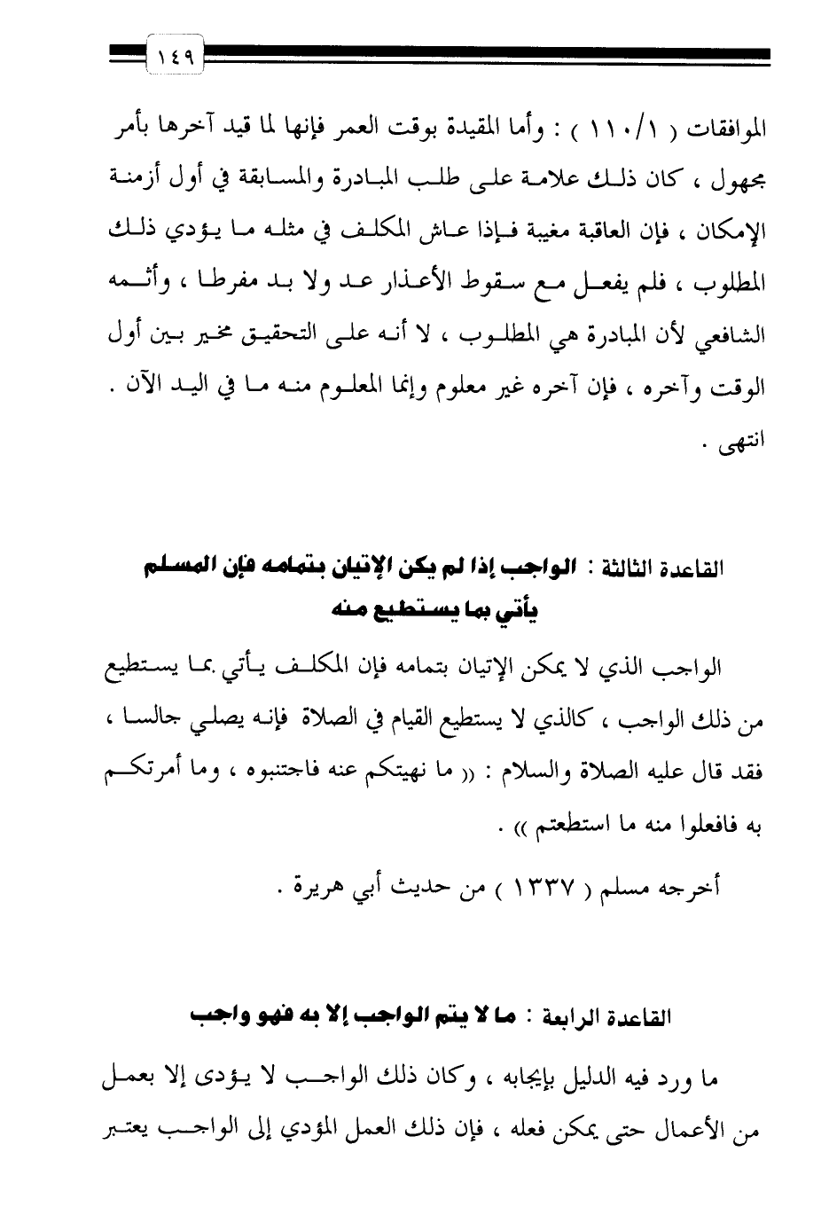 القاعدة الثالثة: الواجب إذا لم يكن الإتيان بتمامه فإن المسلم يأتي بما يستطيع منه