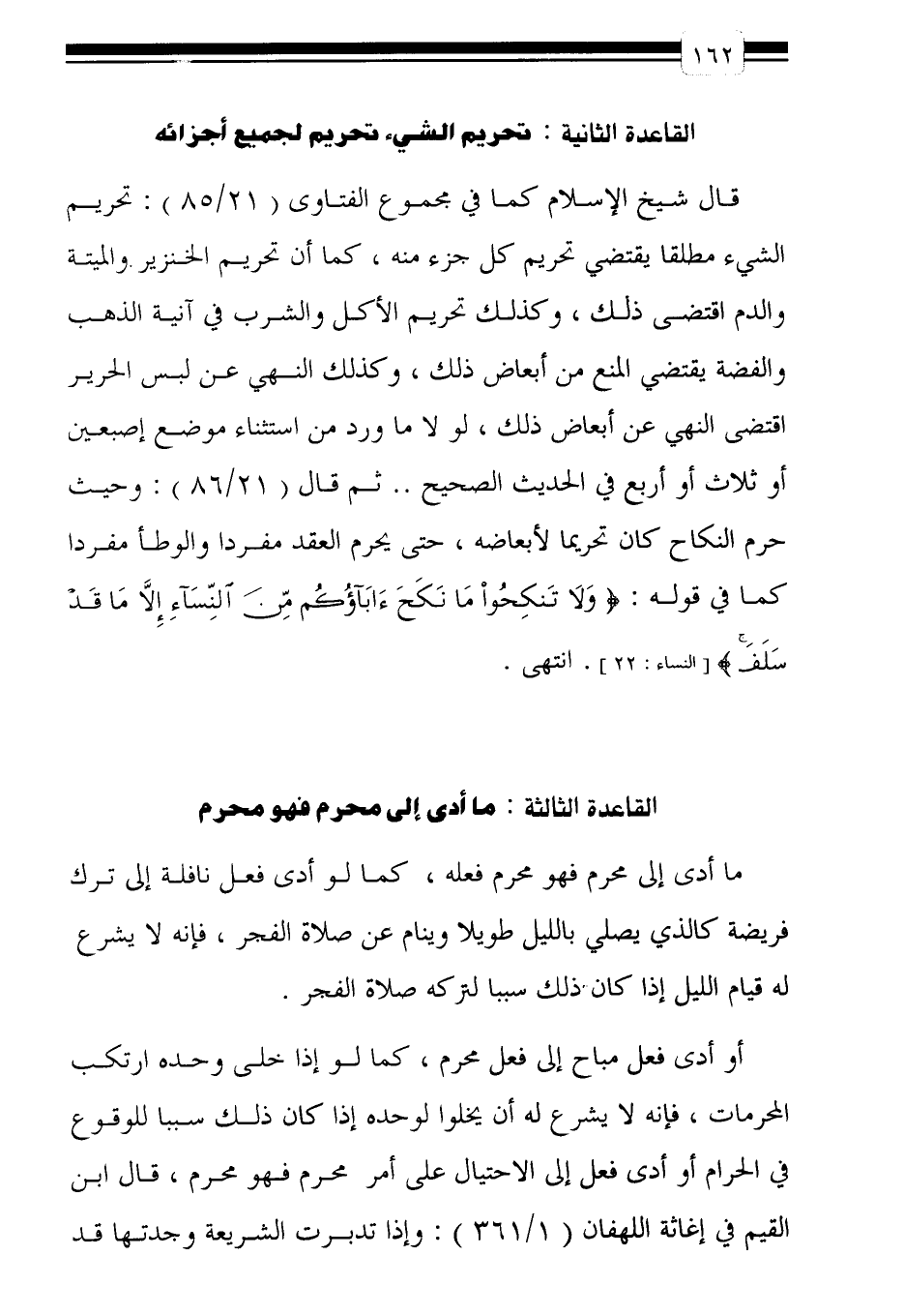 القاعدة الثانية: تحريم الشيء تحريم لجميع أجزائه
