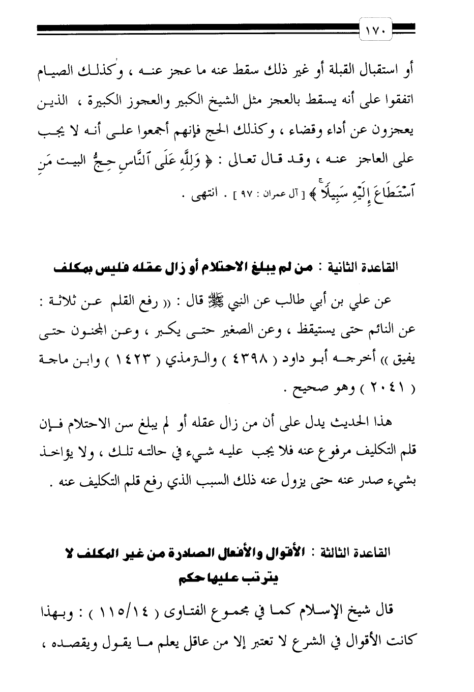 القاعدة الثانية: من لم يبلغ الإحتلام أو زال عقله فليس بمكلف