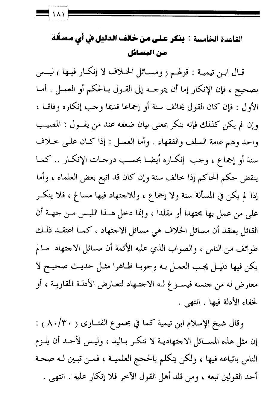 القاعدة الخامسة: ينكر على من خالف الدليل في أي مسألة من المسائل