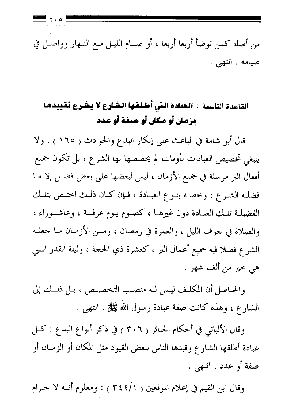القاعدة التاسعة: العبادة التي أطلقها الشارع لا يشرع تقييدها بزمان أو مكان أو صفة أو عدد