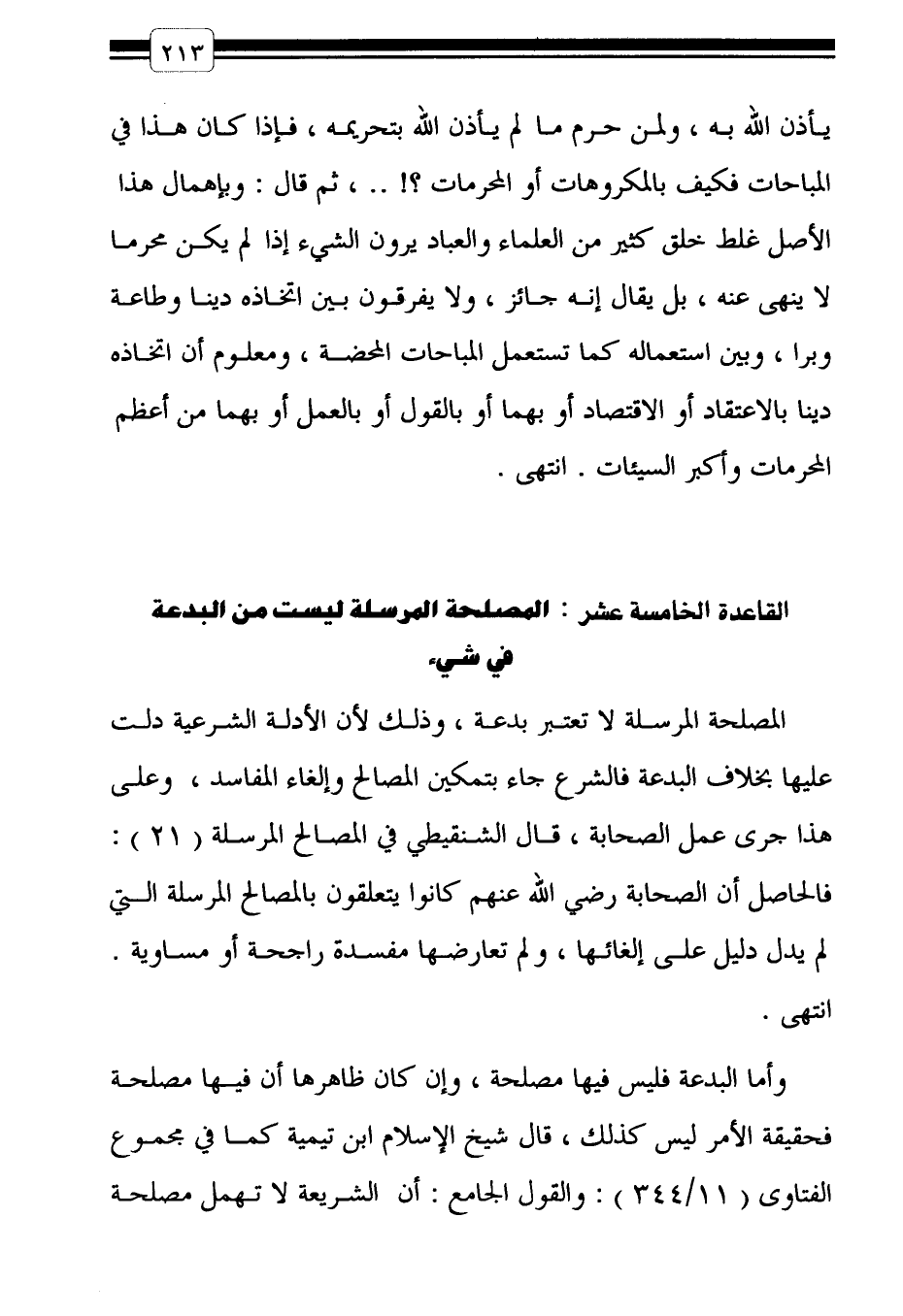 القاعدة الخامسة عشر: المصلحة المرسلة ليست من البدعة في شيء