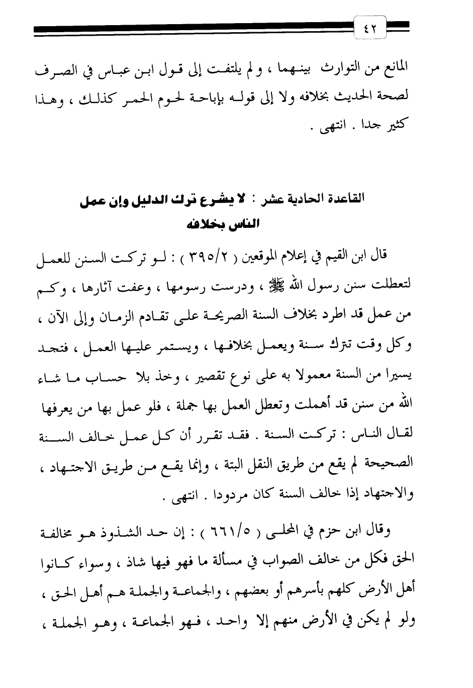 القاعدة الحادية عشر: لا يشرع ترك الدليل وإن عمل الناس بخلافه