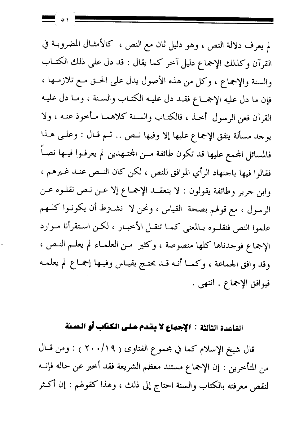 القاعدة الثالثة: الإجماع لا يقدم على الكتاب أو السنة