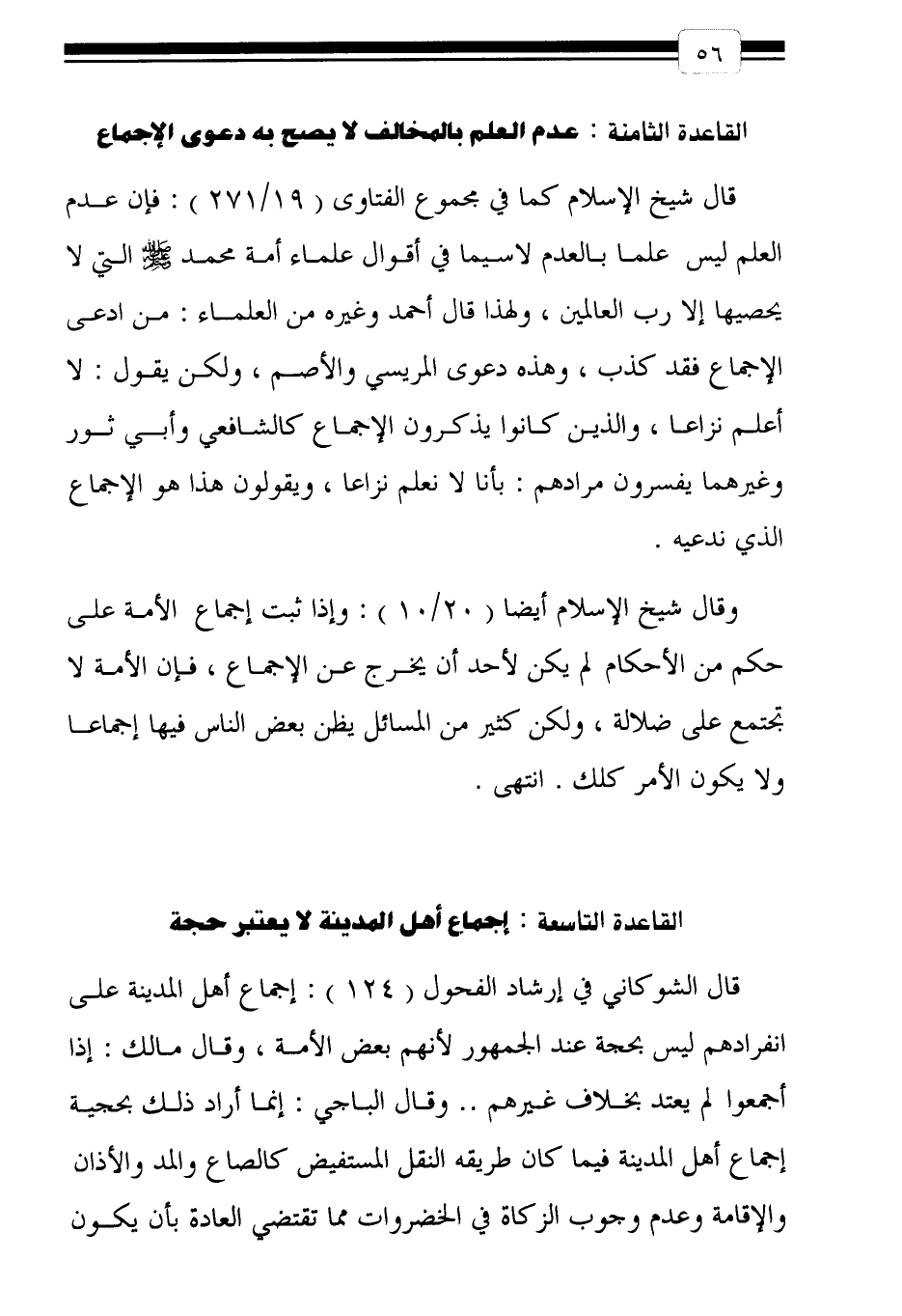 القاعدة التاسعة: إجماع أهل المدينة لا يعتبر حجة