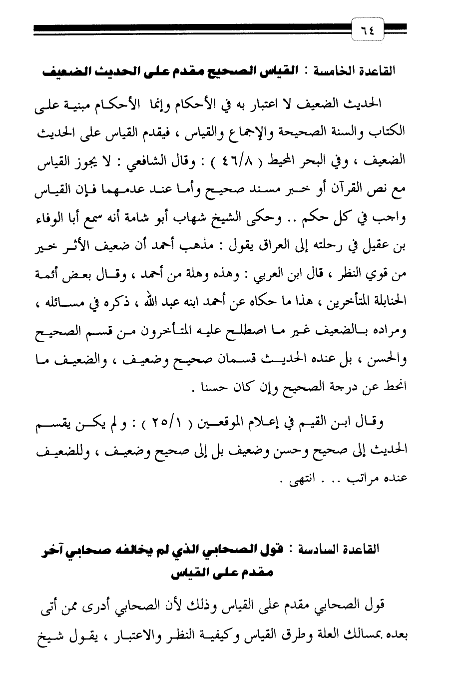 القاعدة الخامسة: القياس الصحيح مقدم على الحديث الضعيف