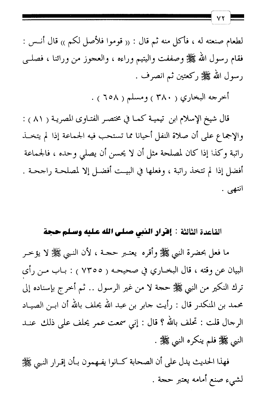 القاعدة الثالثة: إقرار النبي صلى الله عليه وسلم حجة