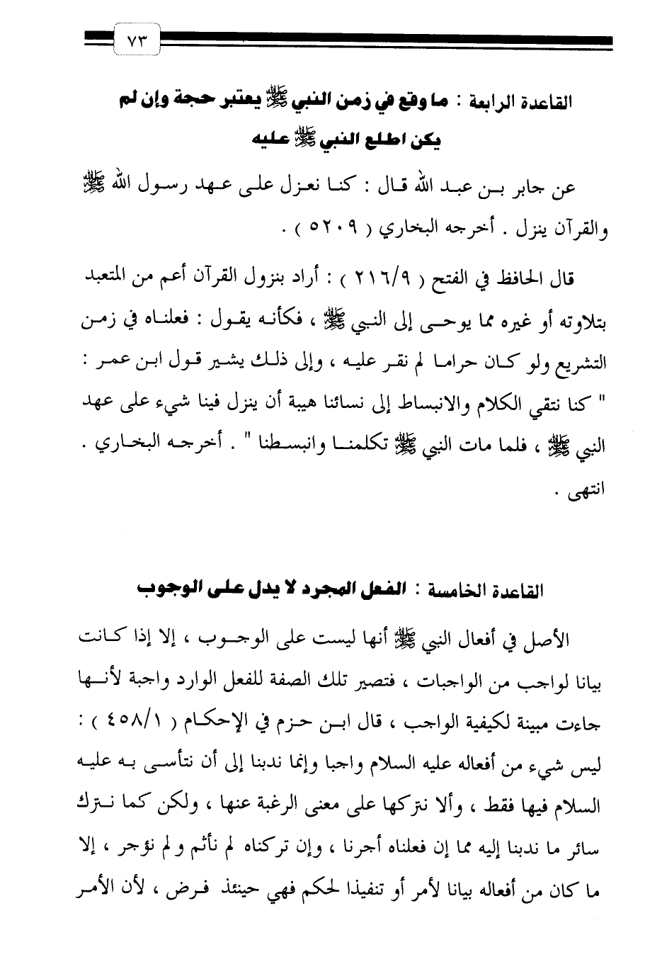 القاعدة الرابعة: ما وقع في زمن النبي صلى الله عليه وسلم يعتبر حجة وإن لم يكن اطلع النبي صلى الله عليه وسلم عليه