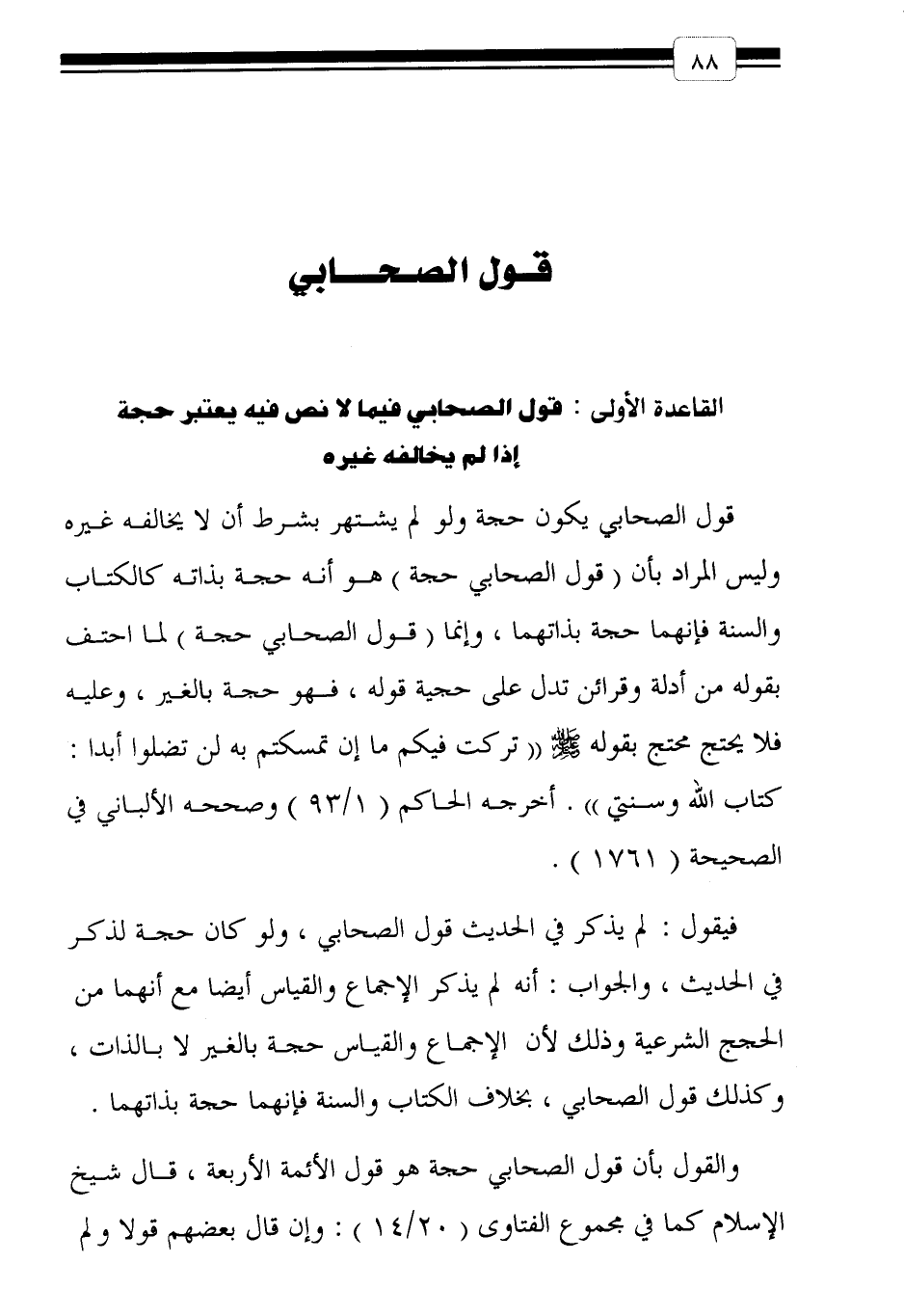 القاعدة الأولى: قول الصحابي فيما لا نص فيه يعتبر حجة إذا لم يخالفه غيره