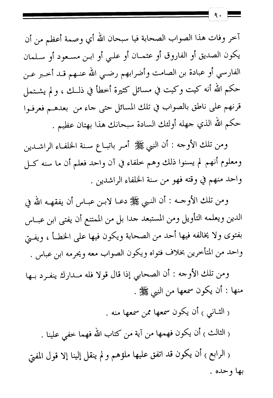 ومن تلك الأوجه: أن النبي صلى الله عليه وسلم أمر باتباع سنة الخلفاء الراشدين ومعلوم أنهم لم يسنوا ذلك وهم خلفاء في آن واحد فعلم أن ما سنه كل واحد منهم في وقته فهو من سنة الخلفاء الراشدين.