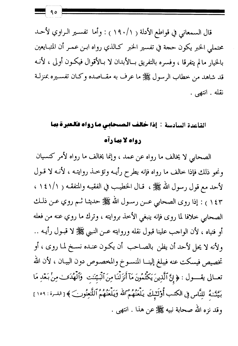 القاعدة السادسة: إذا خالف الصحابي ما رواه فالعبرة بما رواه لا بما رآه