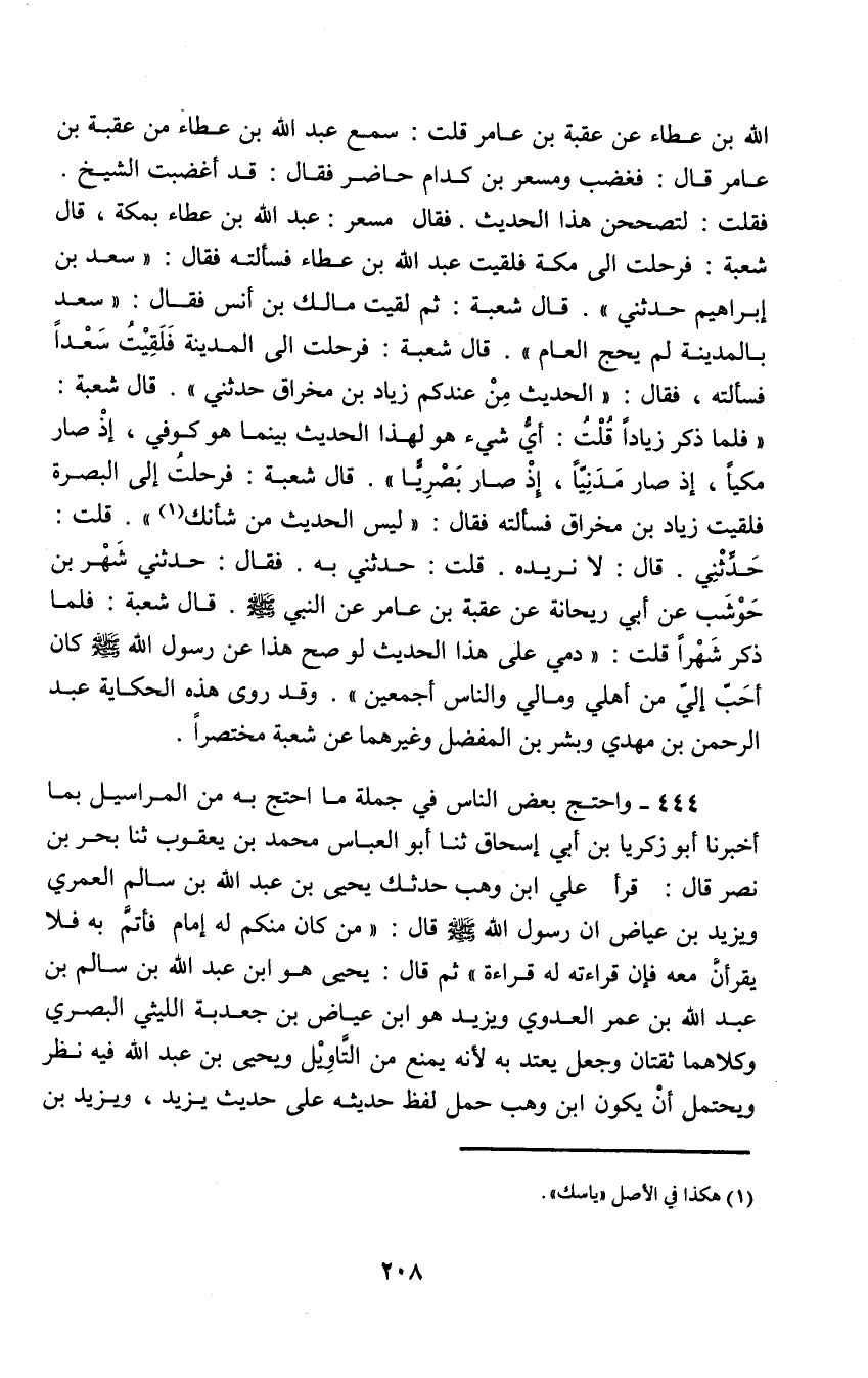 أَخْبَرَنَا أَبُو زَكَرِيَّا بْنُ أَبِي إِسْحَاقَ ثنا أَبُو الْعَبَّاسِ مُحَمَّدُ بْنُ يَعْقُوبَ ثنا بَحْرُ بْنُ نَصْرٍ قَالَ: قَرَأَ عَلَيَّ ابْنُ وَهْبٍ حدَّثَكَ يَحْيَى بْنُ عَبْدِ اللَّهِ بْنِ سَالِمٍ الْعُمَرِيُّ , وَيَزِيدُ بْنُ عِيَاضٍ أَنَّ رَسُولَ اللَّهِ صَلَّى اللهُ عَلَيْهِ وَسَلَّمَ قَالَ: §«مَنْ كَانَ مِنْكُمْ لَهُ إِمَامٌ فَأَتَمَّ بِهِ فَلَا يَقْرَأَنَّ مَعَهُ فَإِنَّ قِرَاءَتَهُ لَهُ قِرَاءَةٌ» ثُمَّ قَالَ: يَحْيَى هُوَ ابْنُ عَبْدِ اللَّهِ بْنِ سَالِمِ بْنِ عَبْدِ اللَّهِ بْنِ عُمَرَ الْعَدَوِيُّ , وَيَزِيدُ هُوَ ابْنُ عِيَاضِ بْنِ جَعْدَبَةَ اللَّيْثِيُّ الْبَصْرِيُّ , وَكِلَاهُمَا ثِقَتَانِ وَجَعَلَ يَعْتَدُّ بِهِ لِأَنَّهُ يَمْنَعُ مِنَ التَّأْوِيلِ , وَيَحْيَى بْنُ عَبْدِ اللَّهِ فِيهِ نَظَرٌ وَيَحْتَمِلُ أَنْ يَكُونَ ابْنُ وَهْبٍ حَمَلَ لَفْظَ حَدِيثِهِ عَلَى حَدِيثِ يَزِيدَ , وَيَزِيدُ بْنُ
